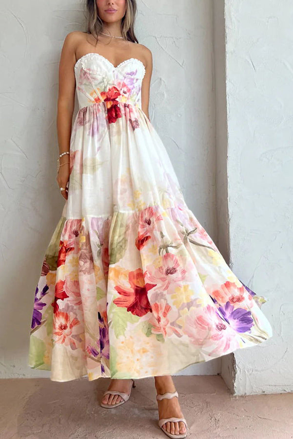 Romantic Date Floral Ruffle Detail Pocketed Corset Maxi Formal / Vacation Dress